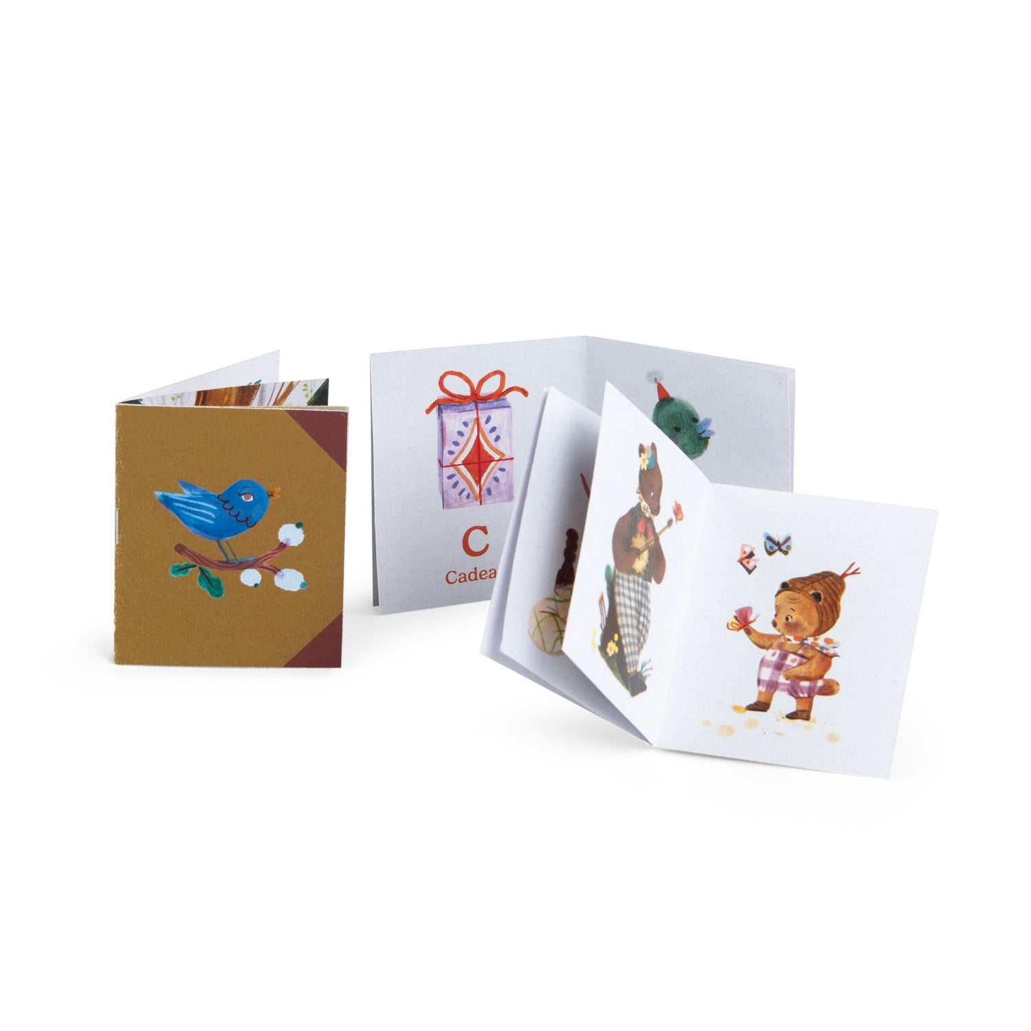 Contenido: Banjo, linterna, dos tazas de madera, tres cojines, tres libros de cuentos, tetera.